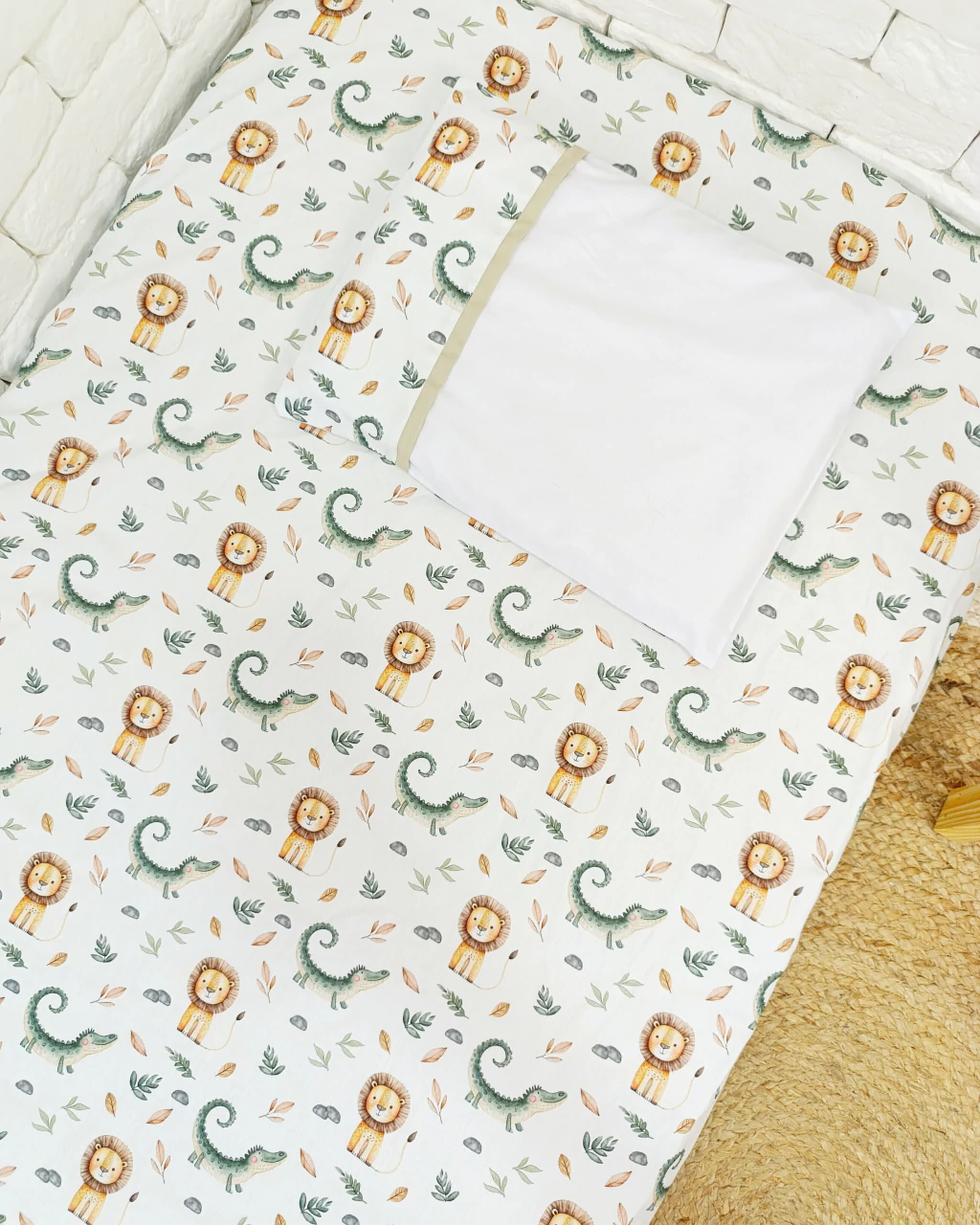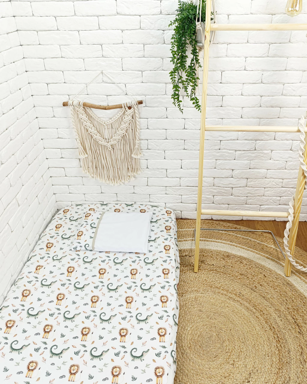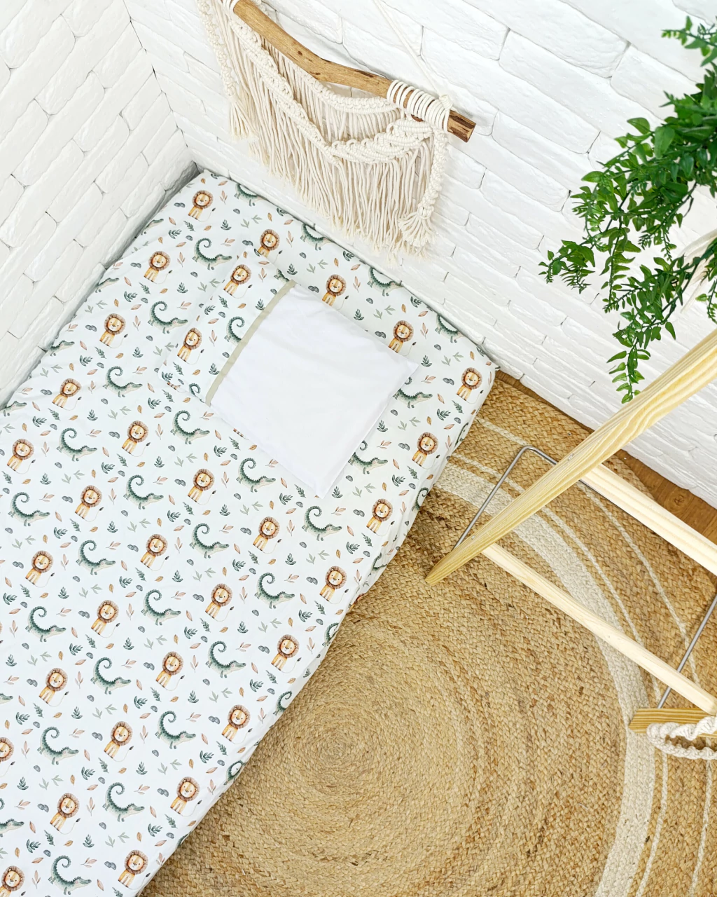 Nosso Jogo de Lençol de 2 Peças para Mini Cama é feito em algodão de alta qualidade, oferecendo suavidade e conforto para o sono do bebê.