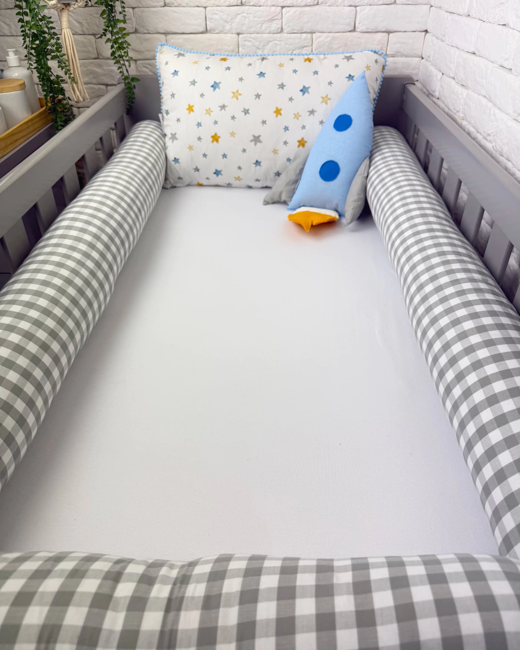 Disponível para berço padrão americano, onde o colchão tem 1.30x70 cm (se desejar uma medida direfente, basta fazer contato com nosso atendimento no whatsapp 21 96469-0563)