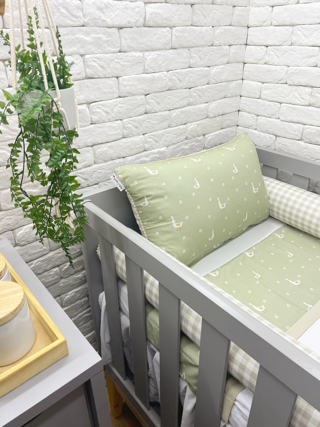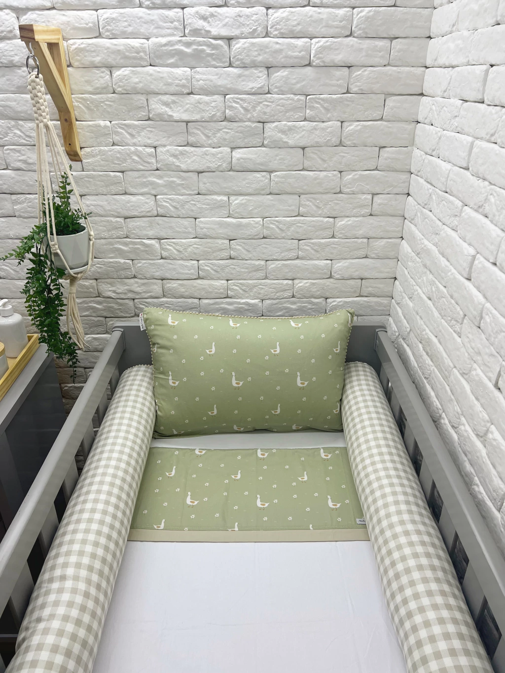 Cabeceira de Almofada Dupla Face - Ganso + Xadrez Bebê