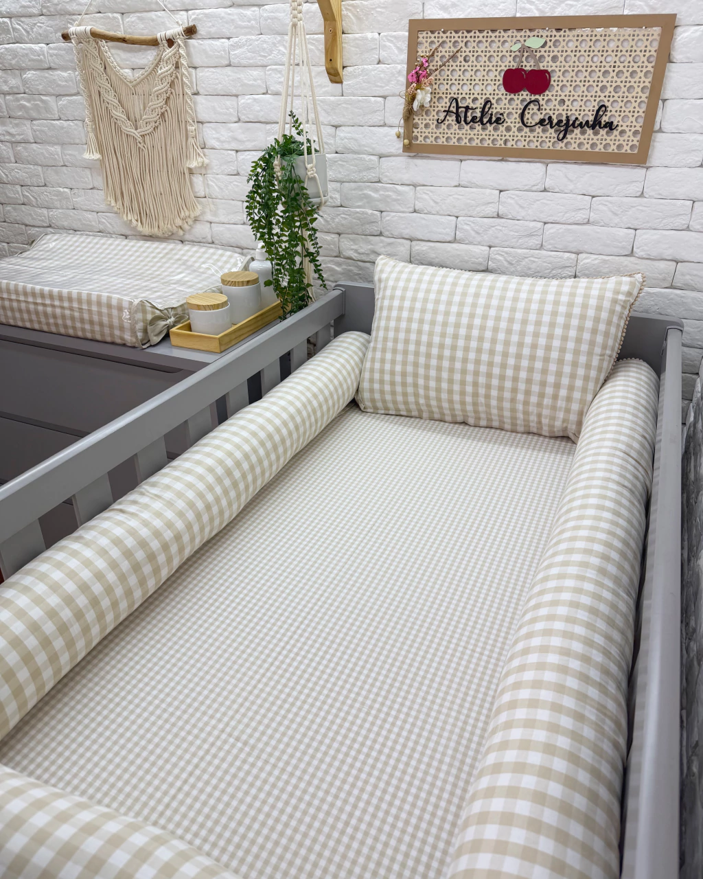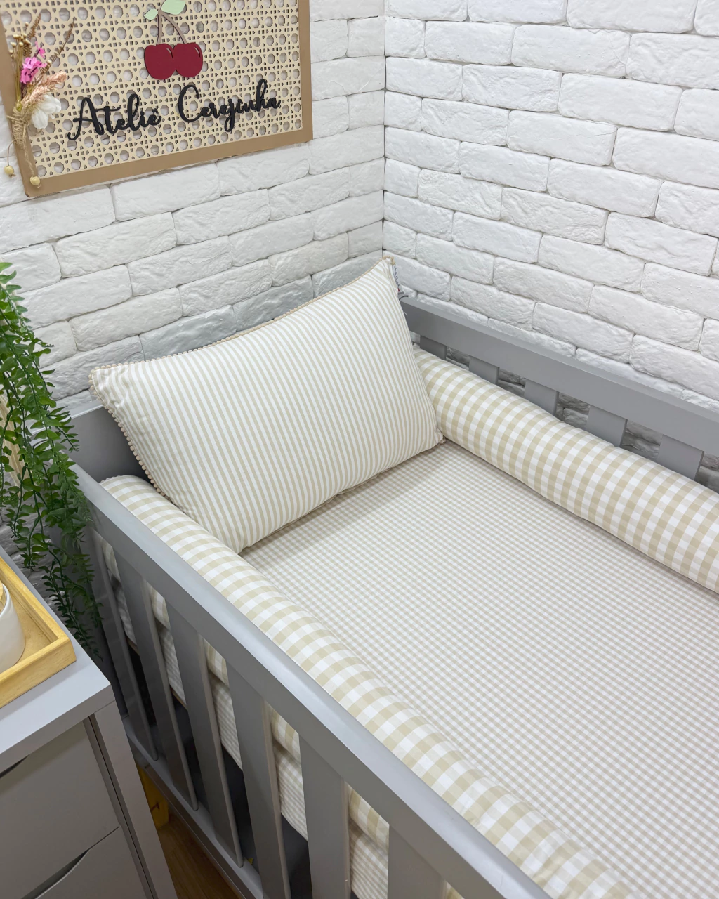 Cabeceira de Almofada Dupla face - Vichy Bege + Listra Bege
